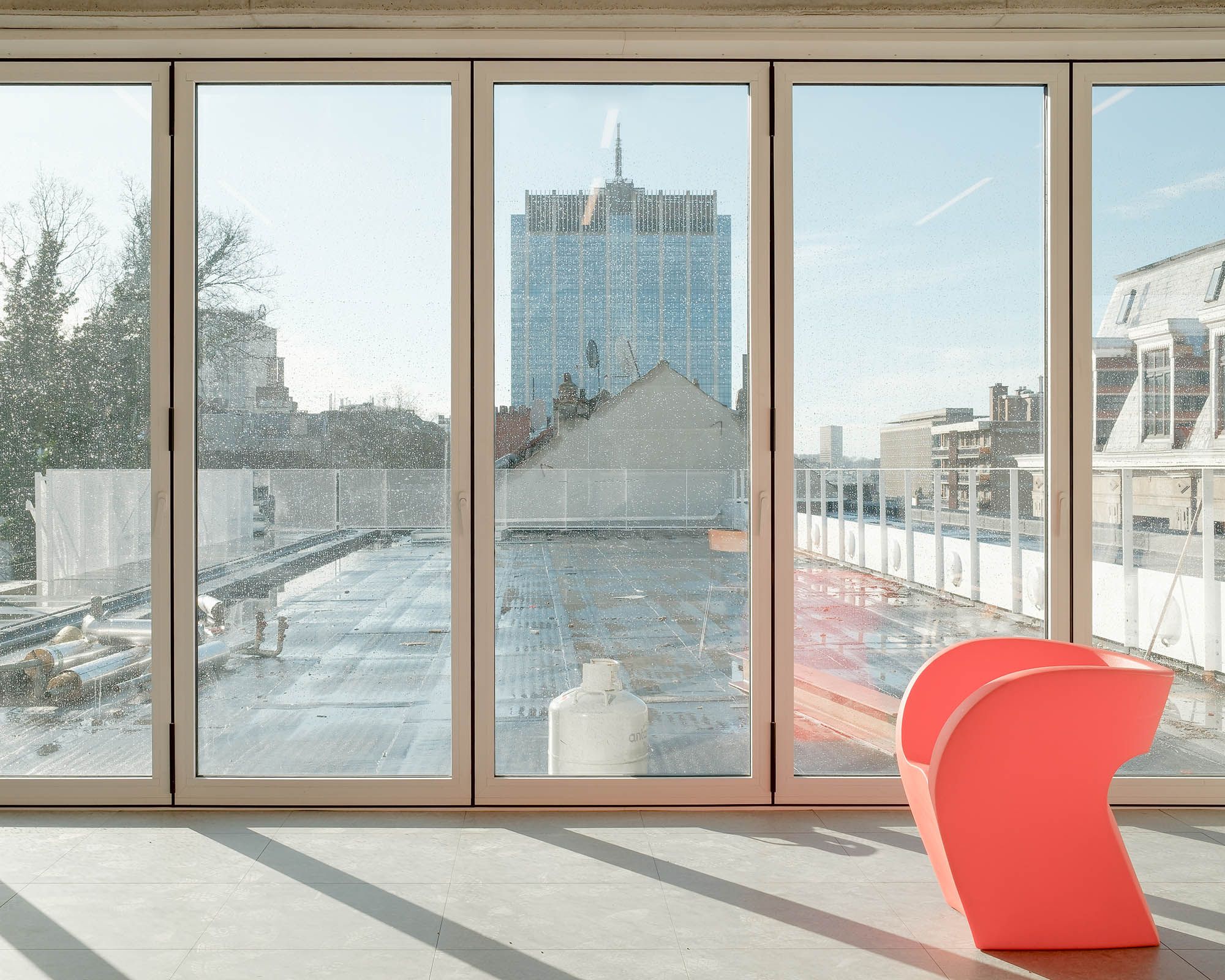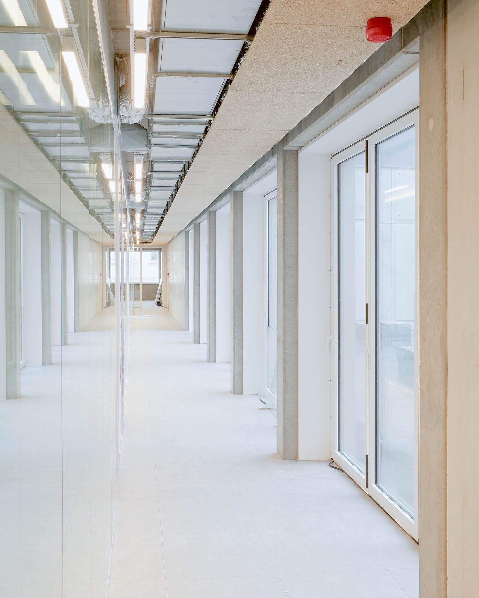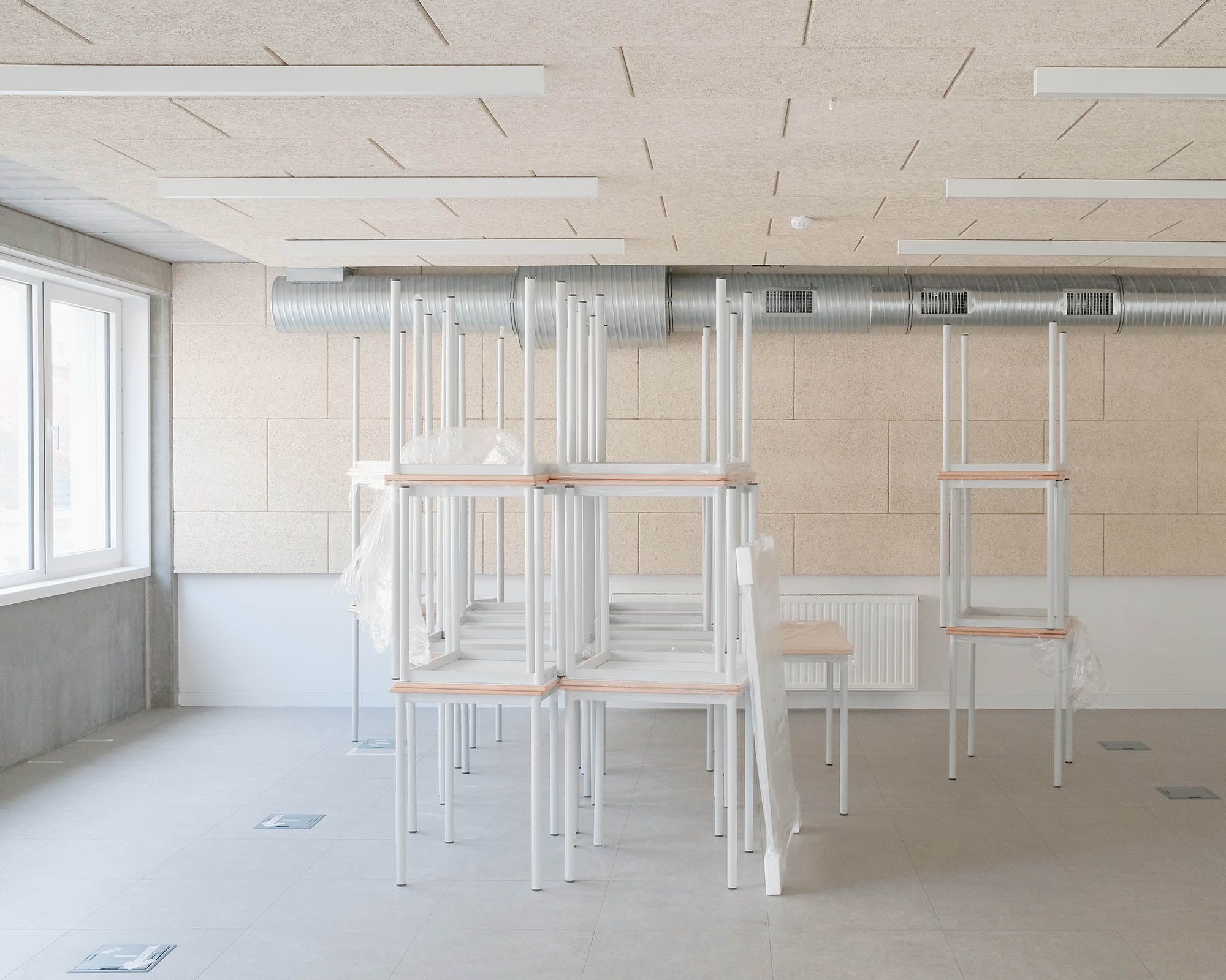 Le chantier de restructuration et d’extension de la Haute École Galileo à Schaerbeek entre dans sa dernière phase de travaux : les deux édifices patrimoniaux sont rénovés et l’extension prête à être investie par les élèves, qui pourront profiter du paysage environnant depuis un belvédère accessible par des circulations extérieures.