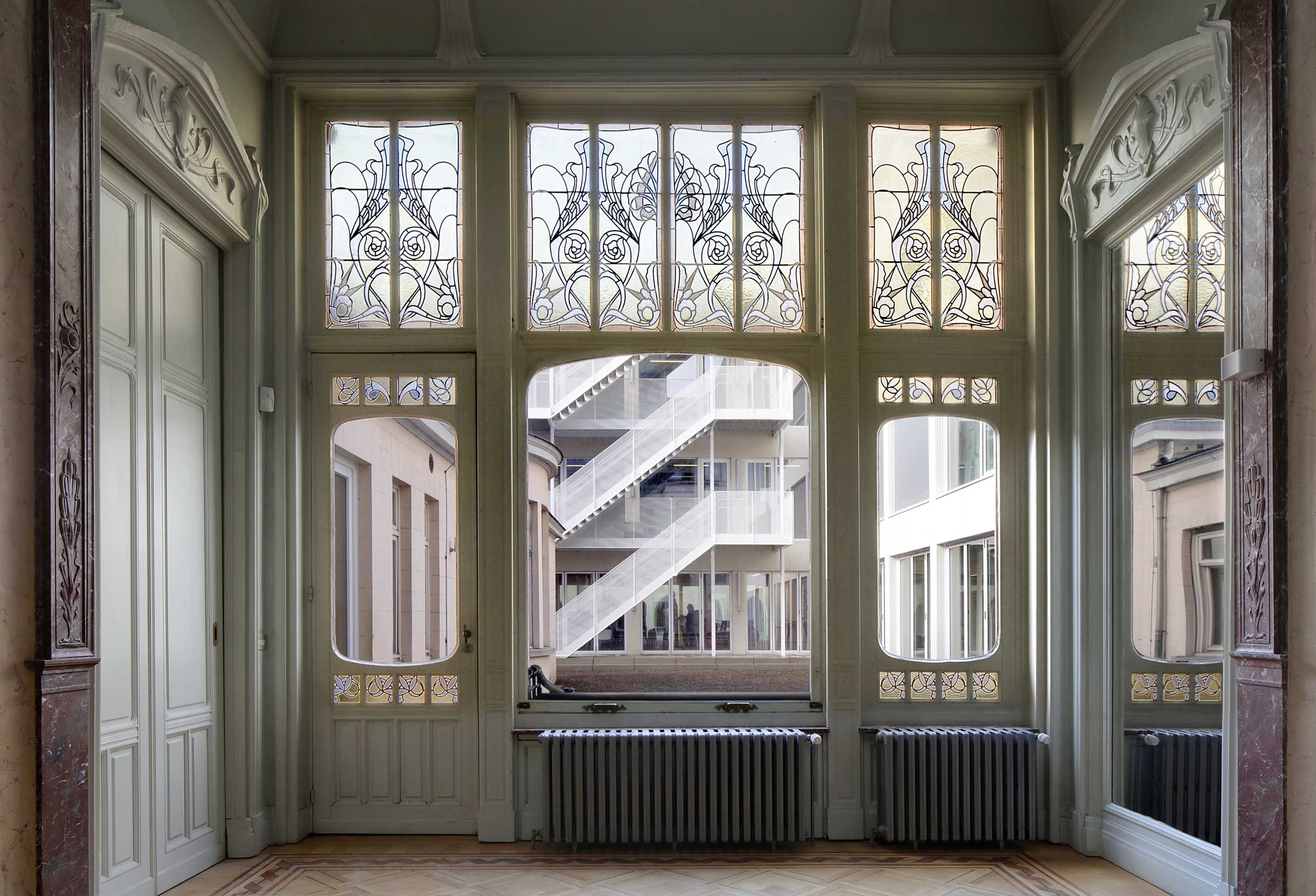 une cour, un jardin et des escaliers extérieurs au calme d’un îlot ;
