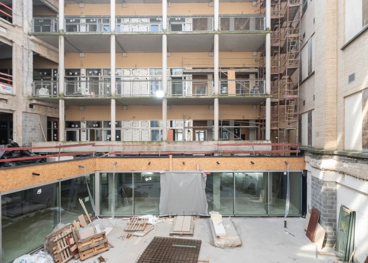Des plateaux hors échelles pour fabriquer des machines outils, des voies ferrées à perte de vue et une rénovation lourde pour installer 63 logements sociaux et le siège du Foyer du Sud. Des typologies qui se saisissent de ces circonstances pour s'inventer, des bureaux qui enlacent des patios vertigineux. Le chantier Luttre, commencé en octobre 2022, sera livré avant l'hiver 2025.