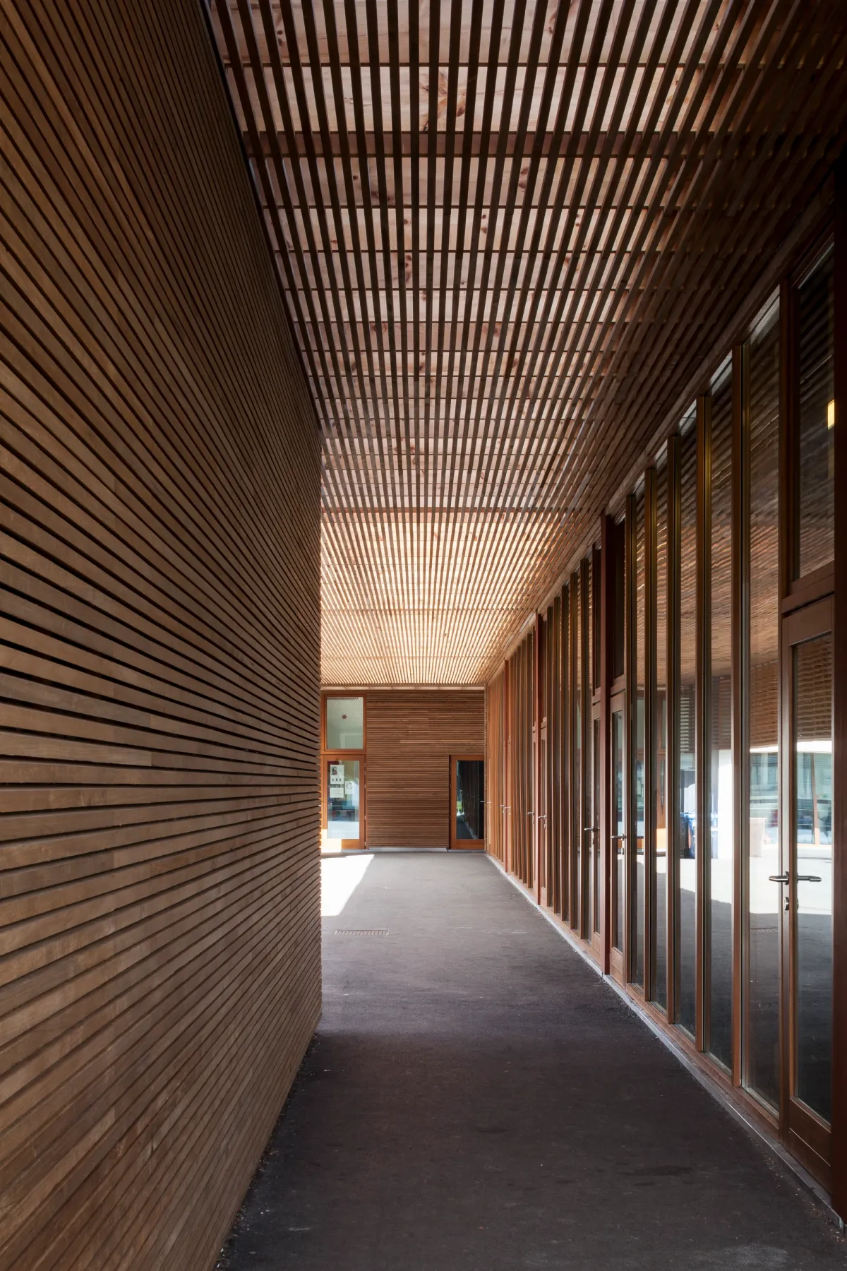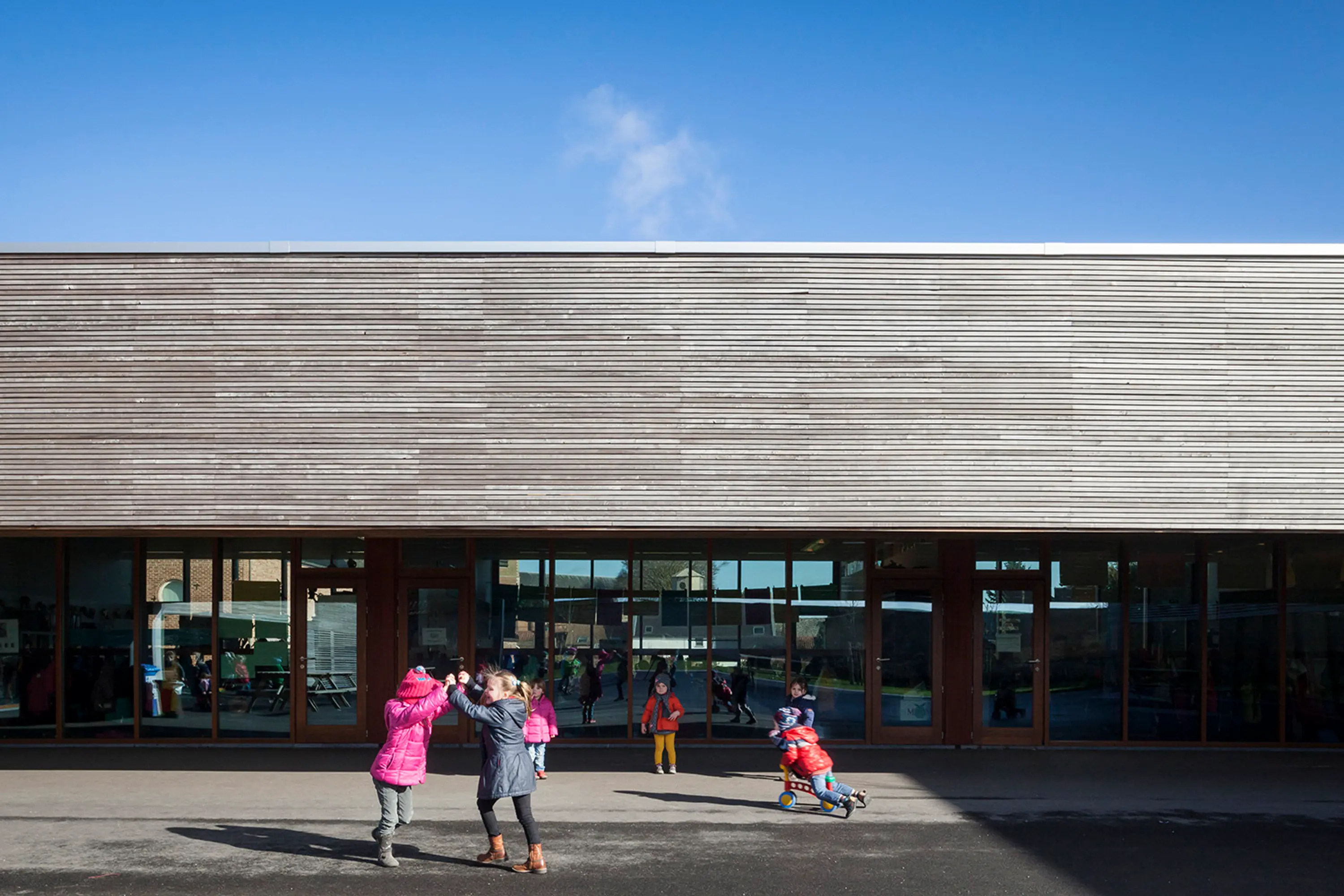 Appuyé par la concertation avec le maître de l’ouvrage, les instituteurs, les parents et les enfants, le projet a intégré les valeurs de développement durable et de respect de l’environnement au coeur même du propos architectural.