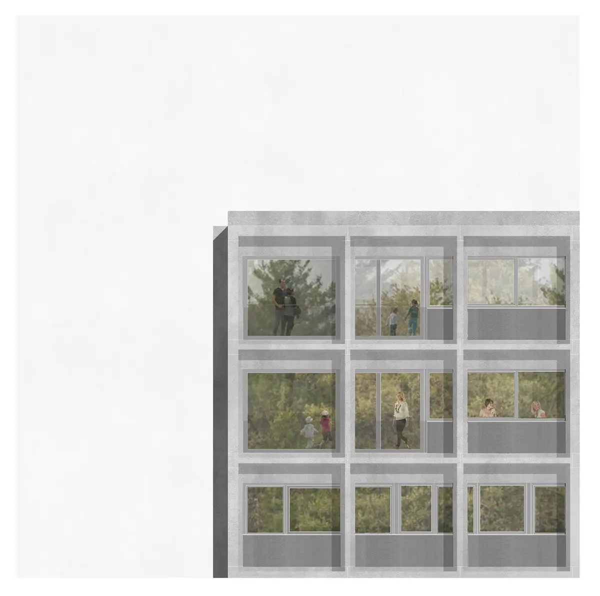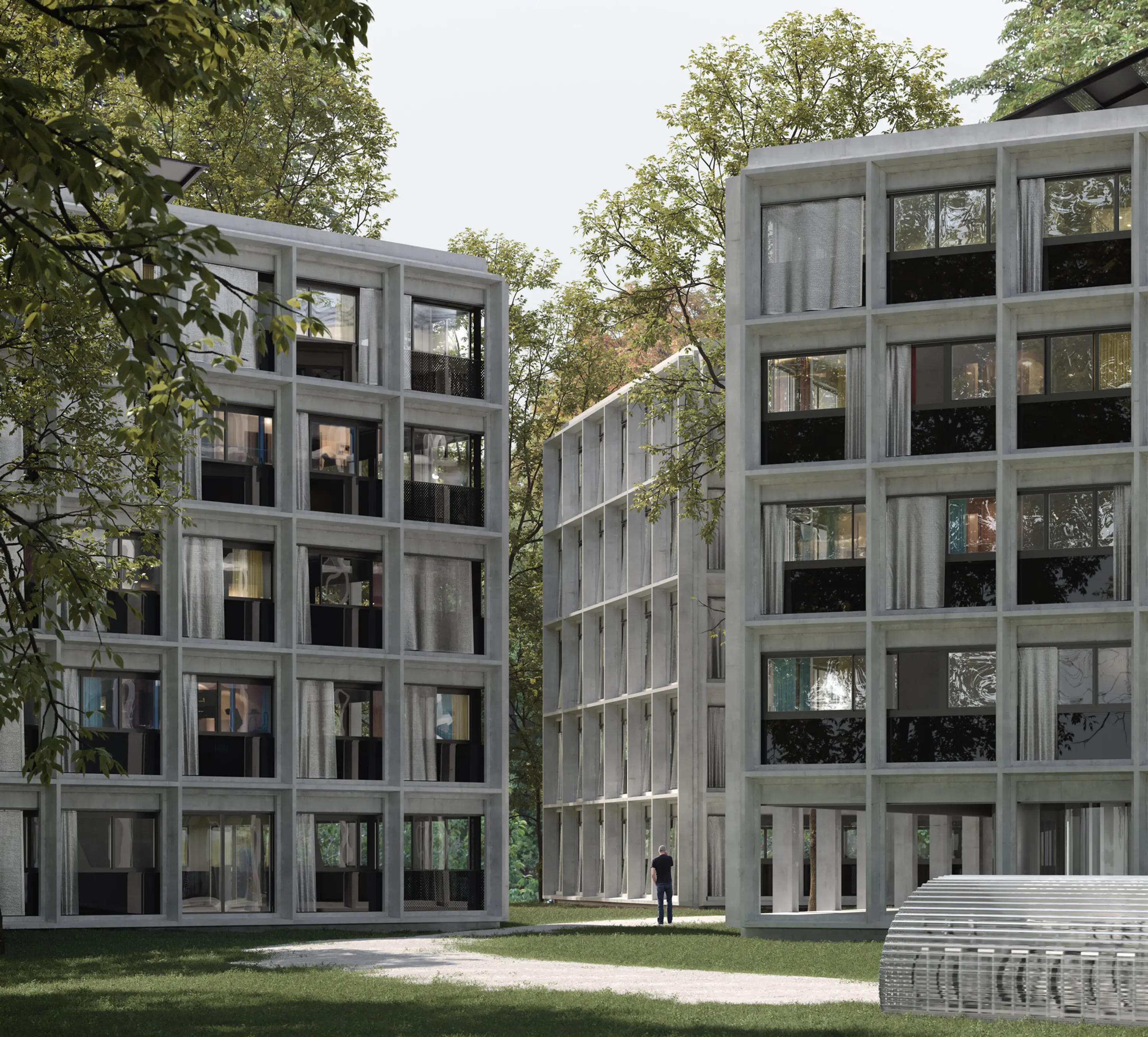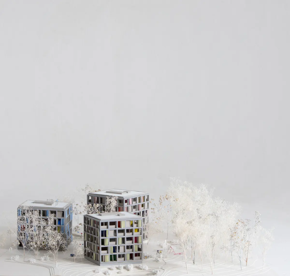 Les 3 volumes à la typologie de villa urbaine proposent un urbanisme d'ordre ouvert, faisant synthèse dans un contexte bâti constitué d'une cité jardin en maisons mitoyennes et d'immeubles d’appartements.