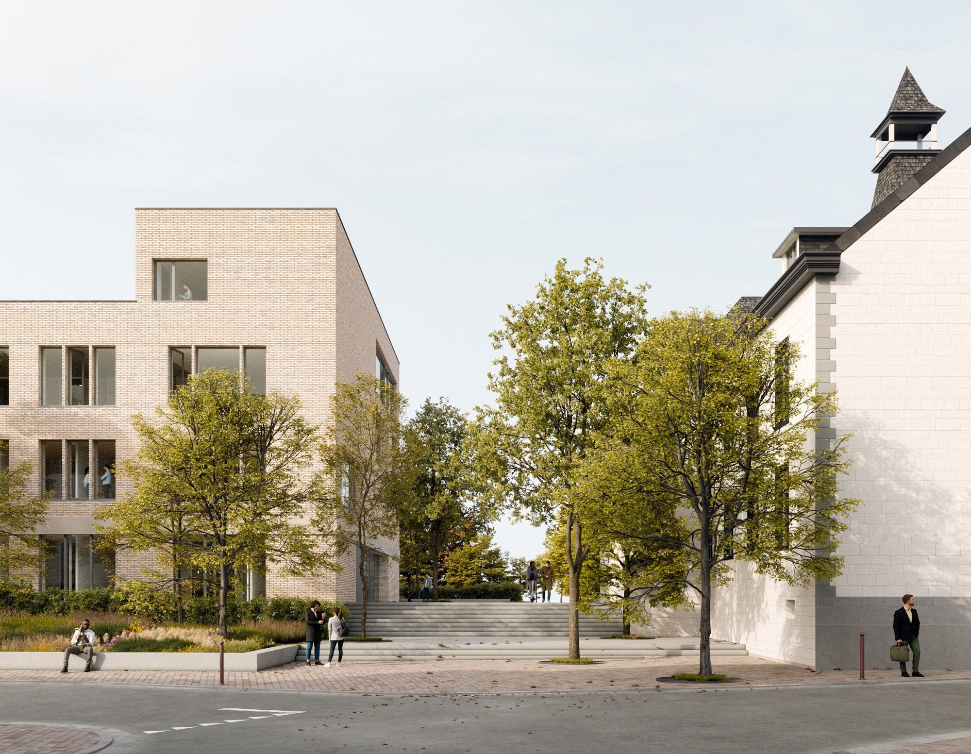 Le projet de l'hotel de ville de Hannut est d'abord un projet de coeur de ville. L'enjeu identifié est de produire un espace public d’articulation entre le noyau urbain, les parcelles mitoyennes et le territoire rural auquel il s‘adresse.