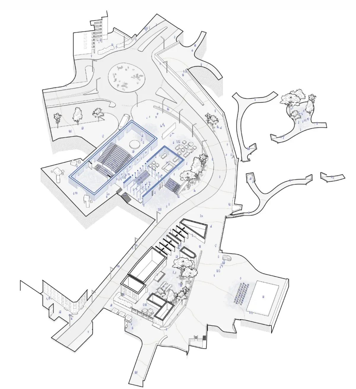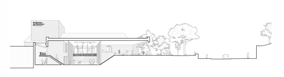 Le projet concerne la restructuration du Manège, Scène nationale et transfrontalière de Maubeuge. Nous proposons un nouveau récit urbain, où le sol devient le support d’un archipel de lieux continus. L’espace des possibles est un espace qui rassemble, aux appropriations multiples.