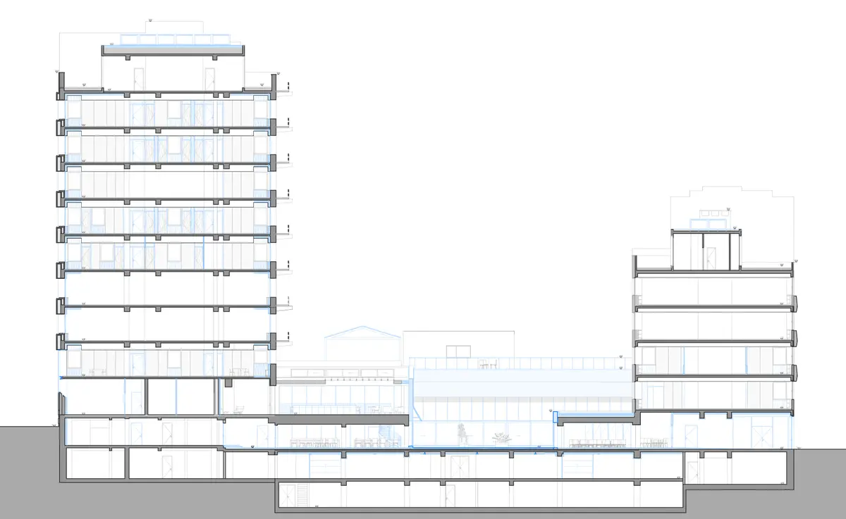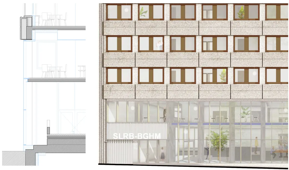 Le projet vise la rénovation de deux immeubles de bureaux et de leur socle commun occupant une parcelle traversante entre l’avenue de la Toison d’Or et la rue Jourdan.