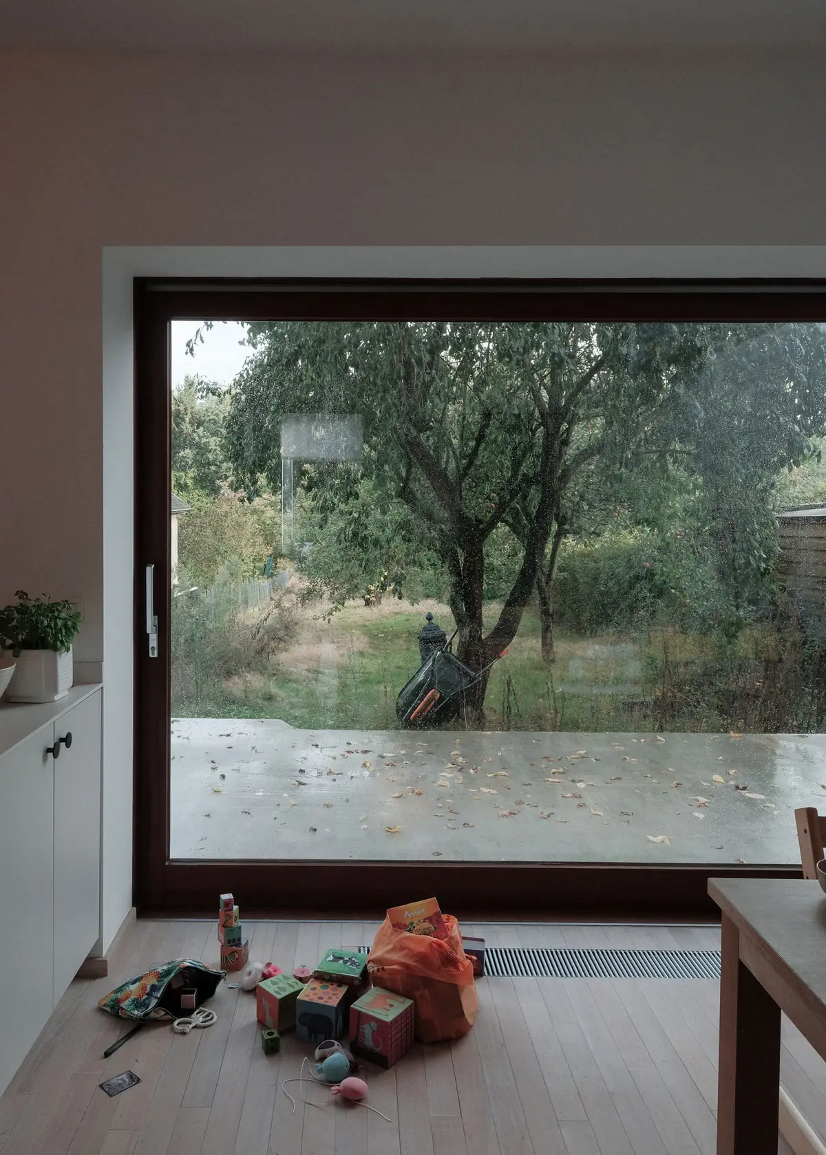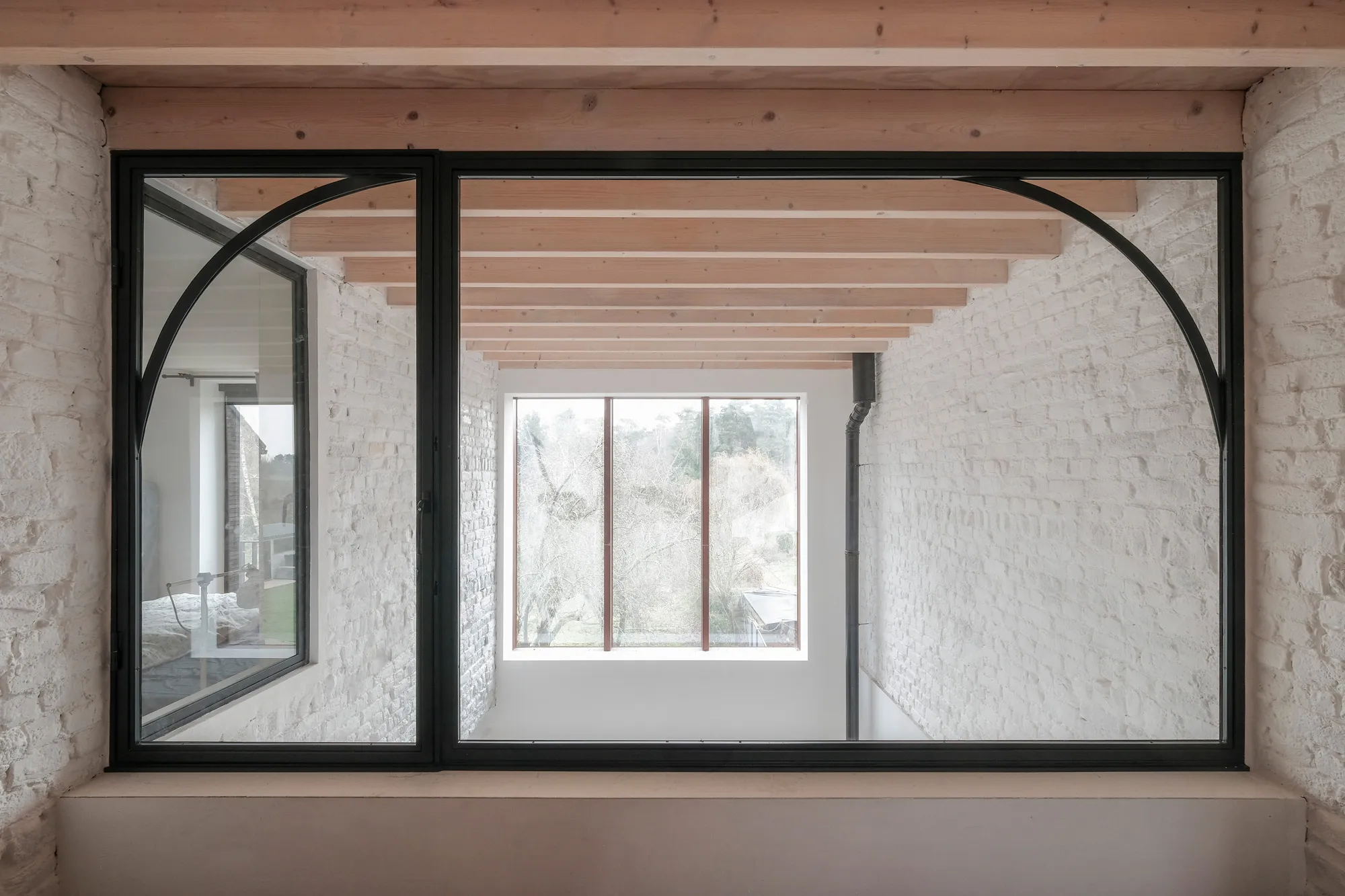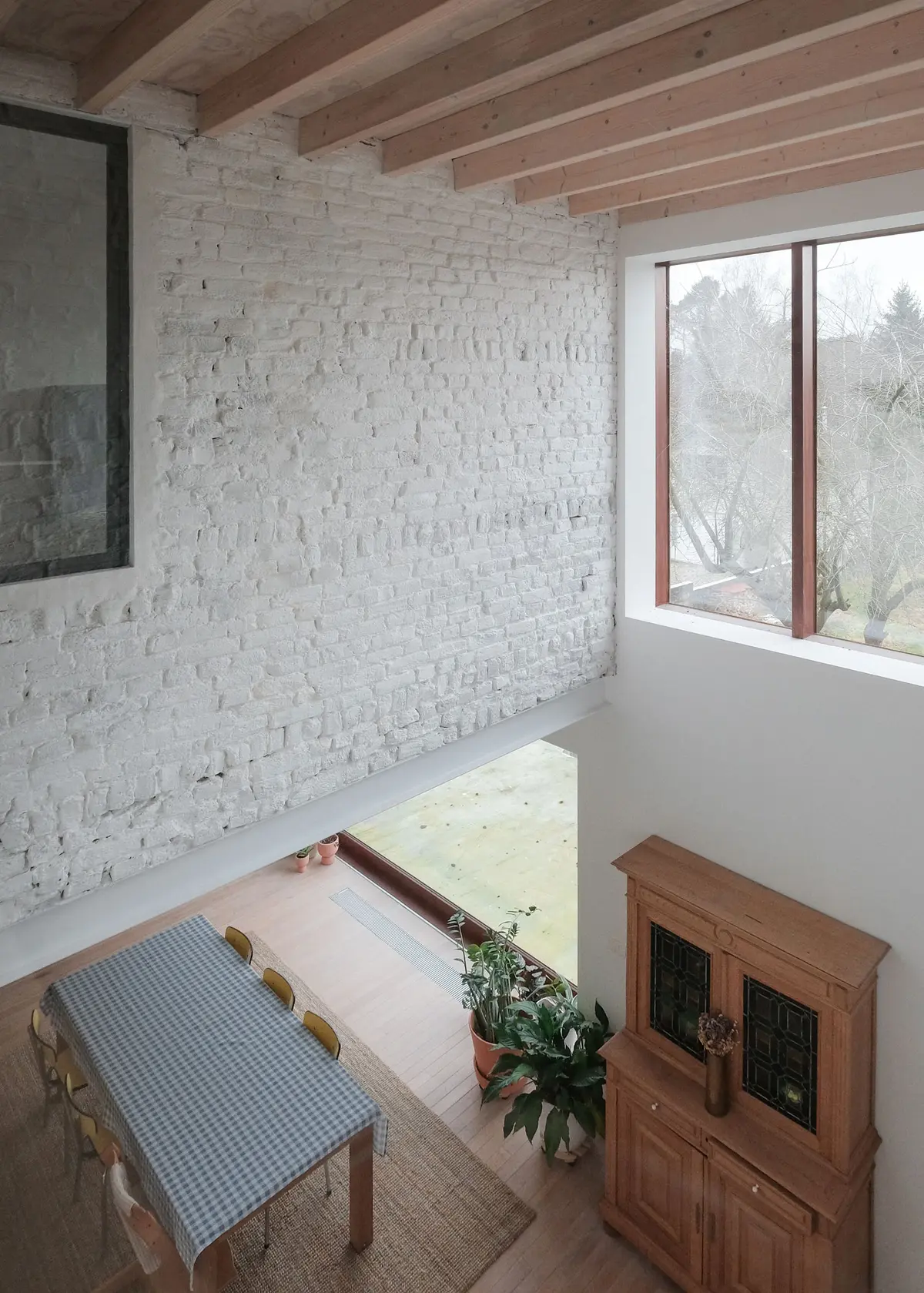 VILLERS est une intervention locale et low-tech privilégiant des choix architecturaux plutôt que des choix techniques. L’idée du «As-found» a guidé la conception et permis de valoriser les forces déjà présentes de la bâtisse. Cette dernière a été considérée comme un corps, que l’on accompagne dans une transformation organique qui s’opère au fil des années, depuis le début du XXème siècle. La façade et l’intérieur est transformé, les briques sont extraites des murs porteurs, déplacées et remaçonnées à d’autres endroits de la maison. Un palimpseste de cicatrices se dessine sur la façade, témoignant de ces temporalités et époques. La rénovation privilégie des matériaux durables et locaux. De nombreux éléments de la maison, tels que les portes, les sols et d’autres détails ont été démontés et réutilisés, ou fournis par Rotor et d’autres entreprises de récupération du réseau Opalis.