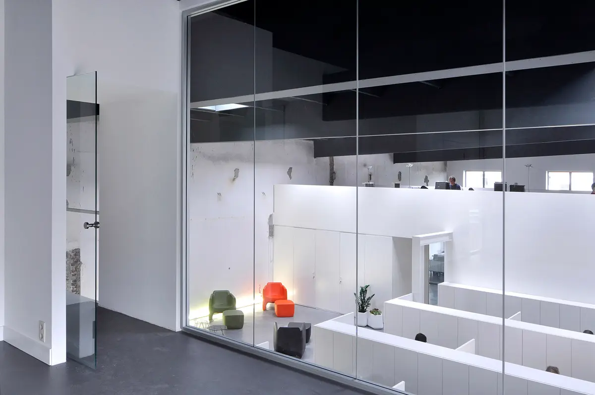 L’espace Van Volxem est un grand volume vide d’une ancienne manufacture. Le projet structure cet espace par une alternance de vide en double hauteur et de volume en deux étages. Ils ont chacun une épaisseur différente afin de diversifier l’ensemble par la taille, la position et les voisinages.